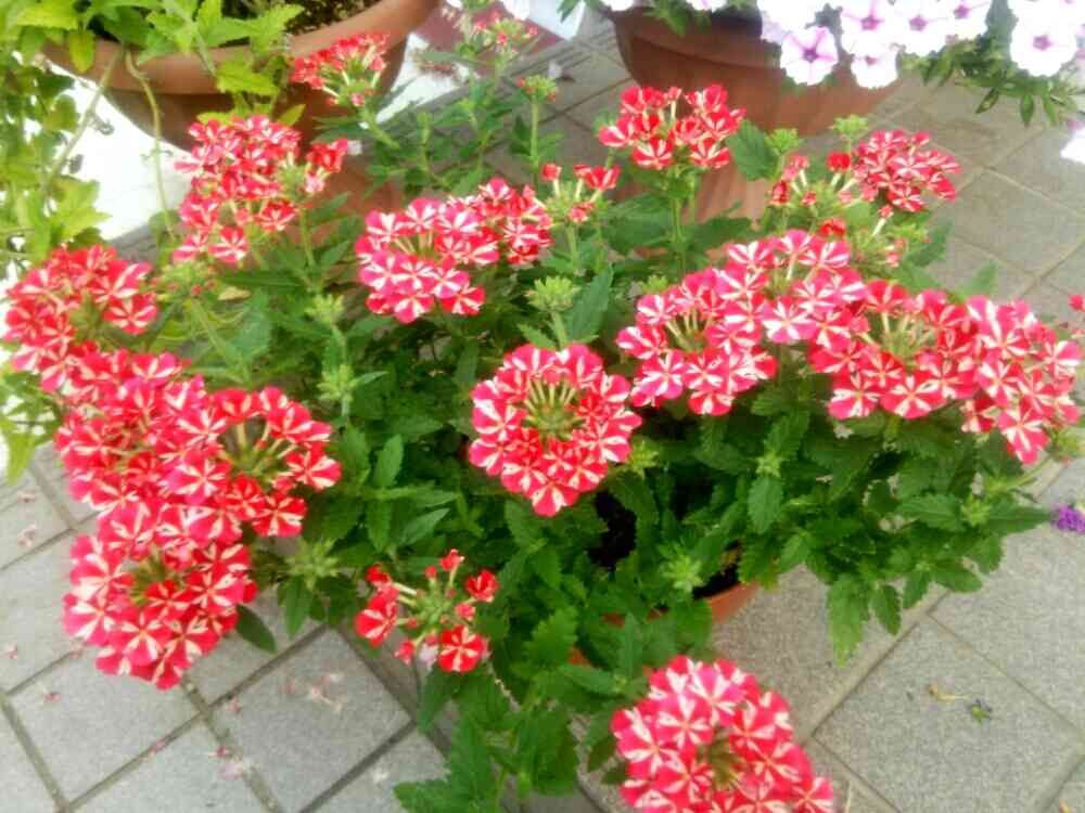 赤いストライプの『バーベナ』がだいぶお花増えてにぎわってきました❤