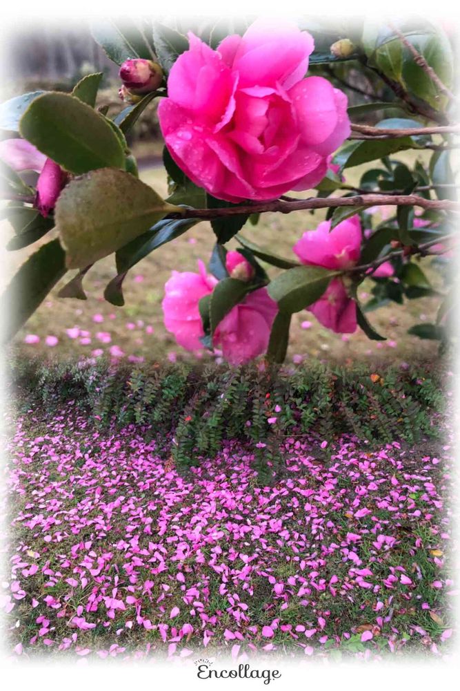 マンション敷地内に咲いている山茶花も花びらのジュウタンみたいですね🌸💕