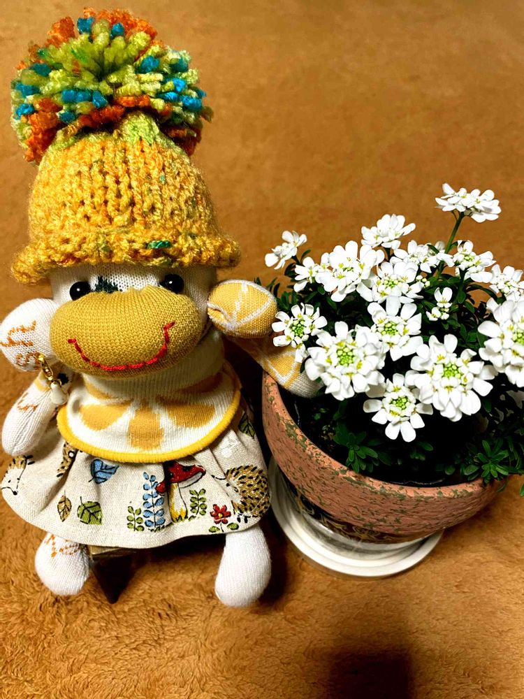 レモン柄の靴下で作ったモンキー?モンスター?わたしはモンキーだと思うんだけど、娘はモンスターだって言うの😭レモンのモンキーだから、もんもんちゃん♥そのままだよね😝毎日挨拶してるのよ🤗もんもんちゃんおはよっ♥って😊やっぱ乙女だよねぇ( ´ •̥ ̫ •̥ ` )私♥自分で言うかっ😭😫