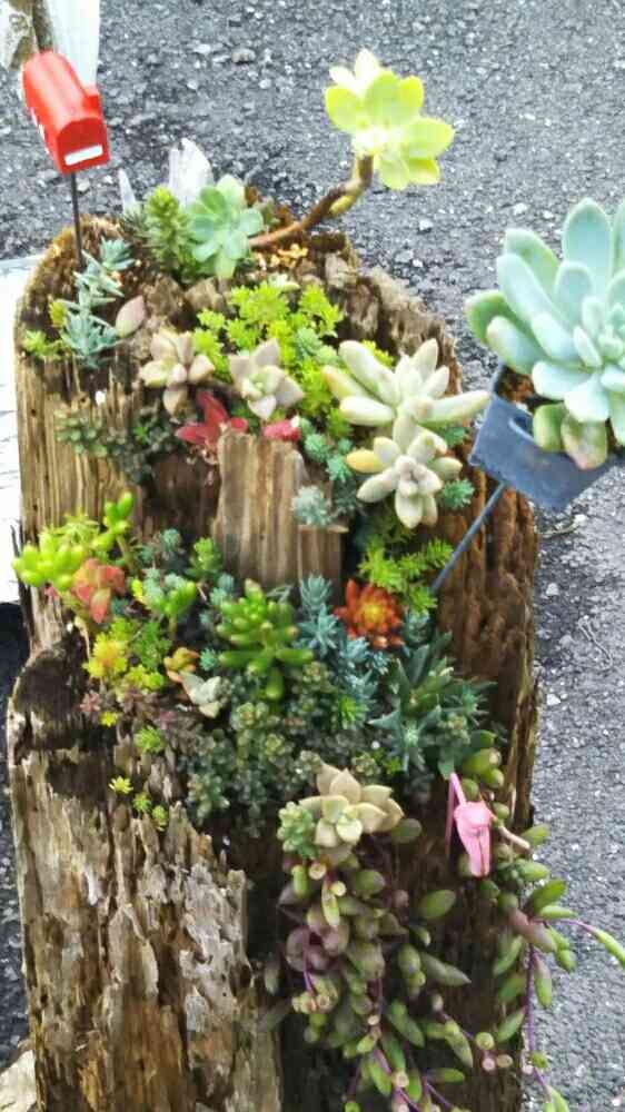 流木や、切株?の寄せ植え素敵ですね〜〜💕