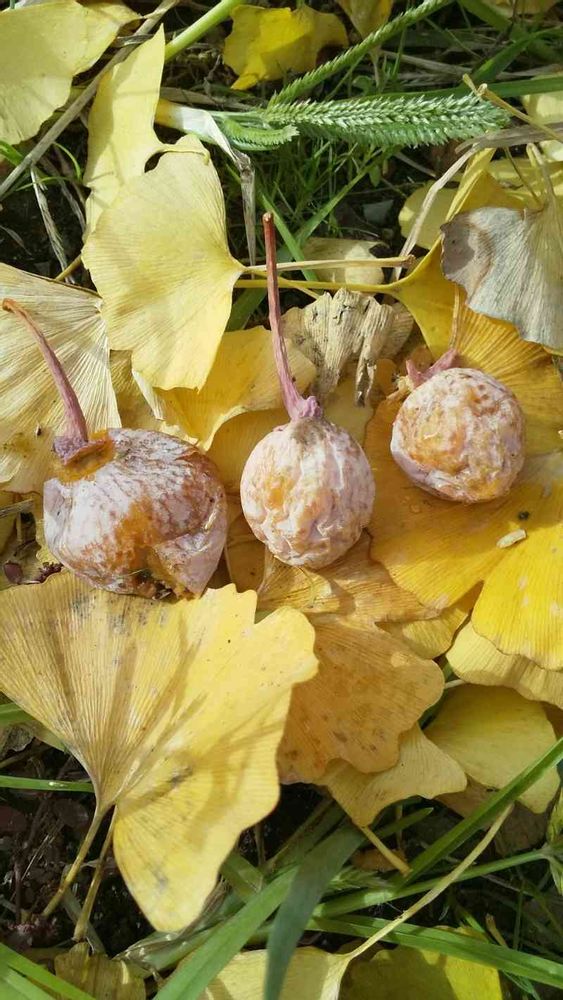 銀杏の実初めて。この実中にあの硬い殻付きが入ってるの?😱匂いは強烈なんだけどねスト-ブの上で焼いて(いって)食べると美味しいですよね♪