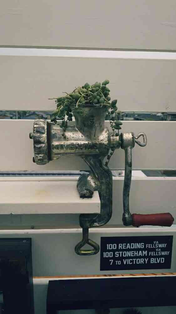 レトロなミートチョッパーにグリーンネックレス植えてジャンク感を演出✨