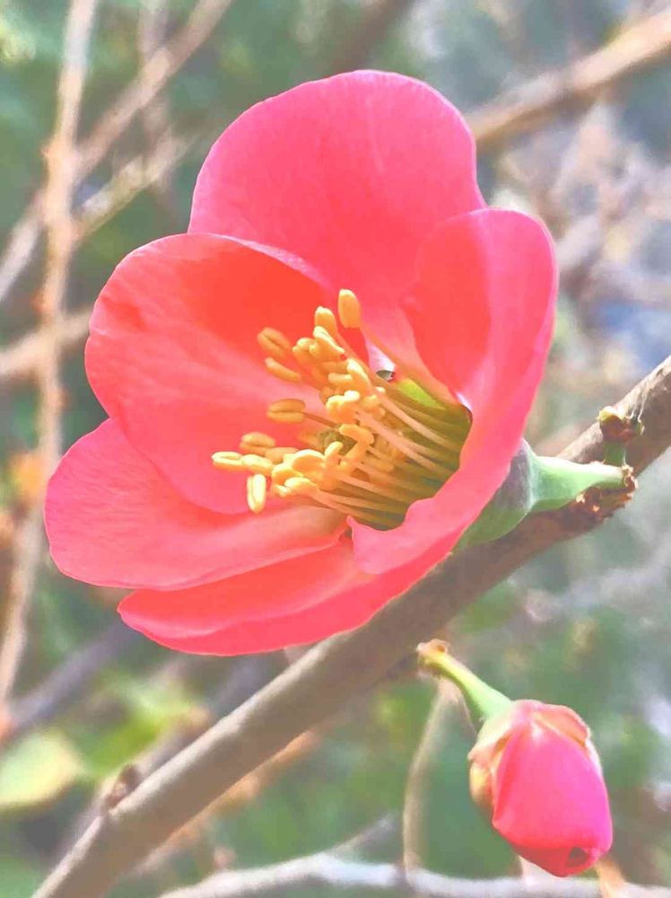 こちらも、ボケが、1輪、2輪と、咲いてます。