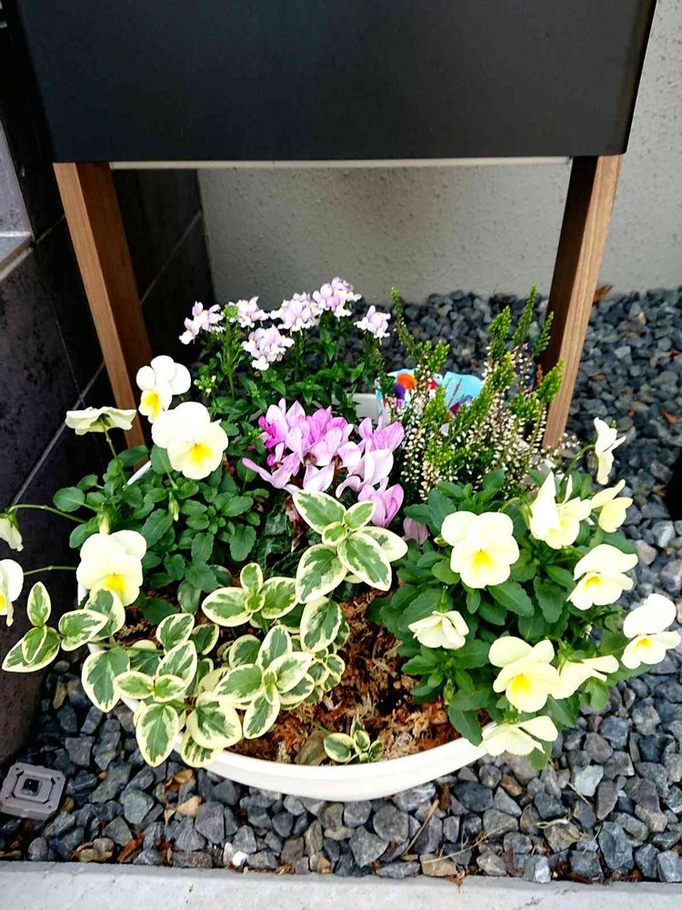 ガーデンシクラメンクレヨンをお迎えしたんですね(*´︶`*)♡可愛いですよね。私は沢山花苗を買いすぎてるので断念しました😢とっても可愛い寄せ植えですね!