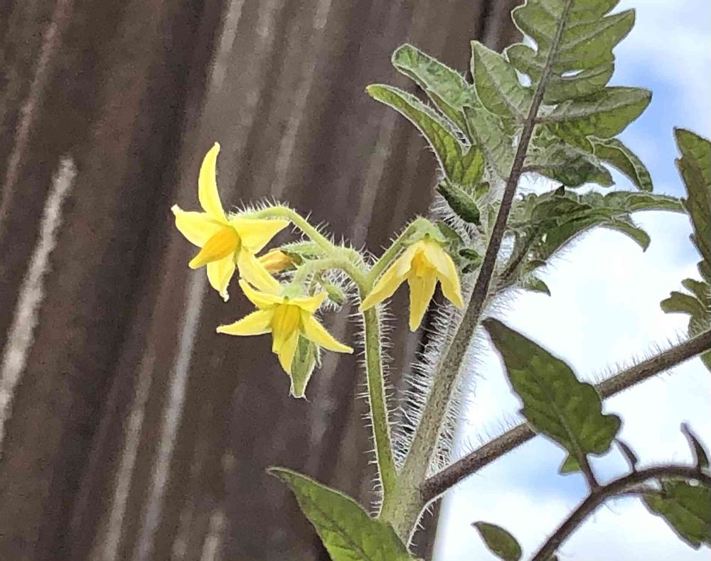 うちにも落ちたプチトマトからの発芽、開花🍅ありまーす😃