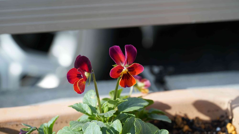 ビオラ サンセットオーシャン。11月22日撮影。スゴイ赤のグラデーションΣ(・ω・ノ)ノ!先週お迎えいたしました🎶