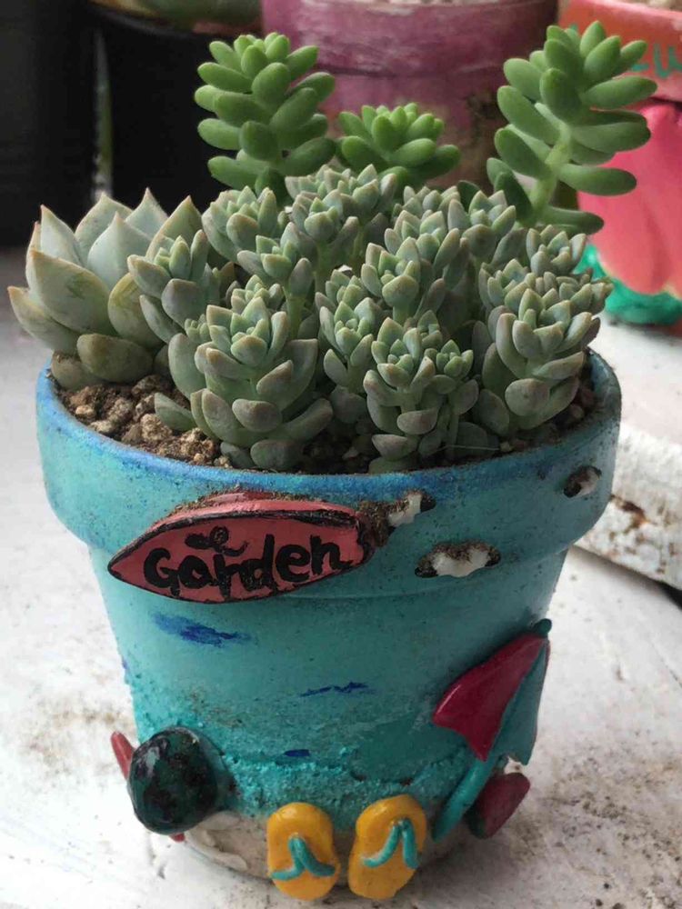 と言うことで、この前作ってもらった、GSの大事なお友達のしょーちゃん作の『サマーバージョン鉢🏝』に寄せ植えしました💕