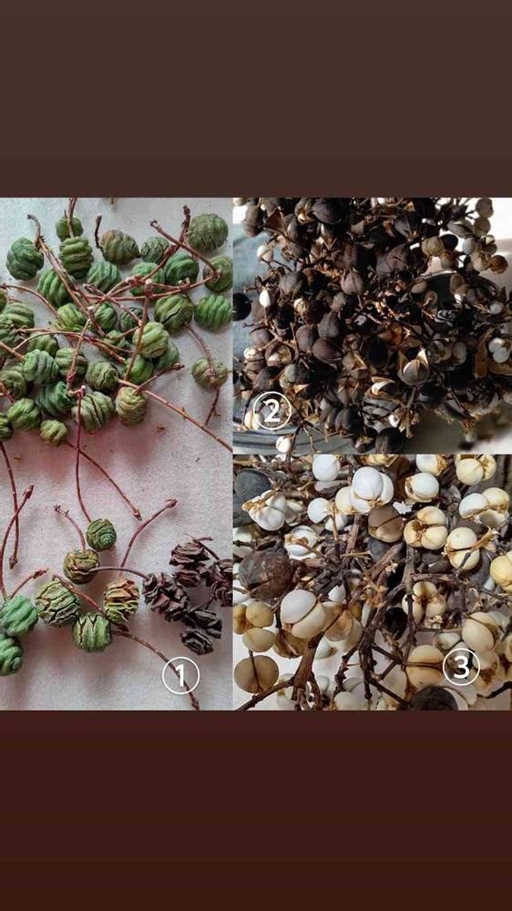 ②は一昨日の朝の散歩で。普段白く爆ぜた実が落ちてる。この日は雨の翌日のせいか黒いままで沢山、枝が10cm位ついたままで。重くて折れたのか、風が強くて落ちたのか?🤔でも爆ぜる前で濡れてて😅③は乾燥させて黒い殻を取り除いたところ。茶色く汚れてる実も多かった😂でも、自然の恵みを大切に使わせてもらいます✨