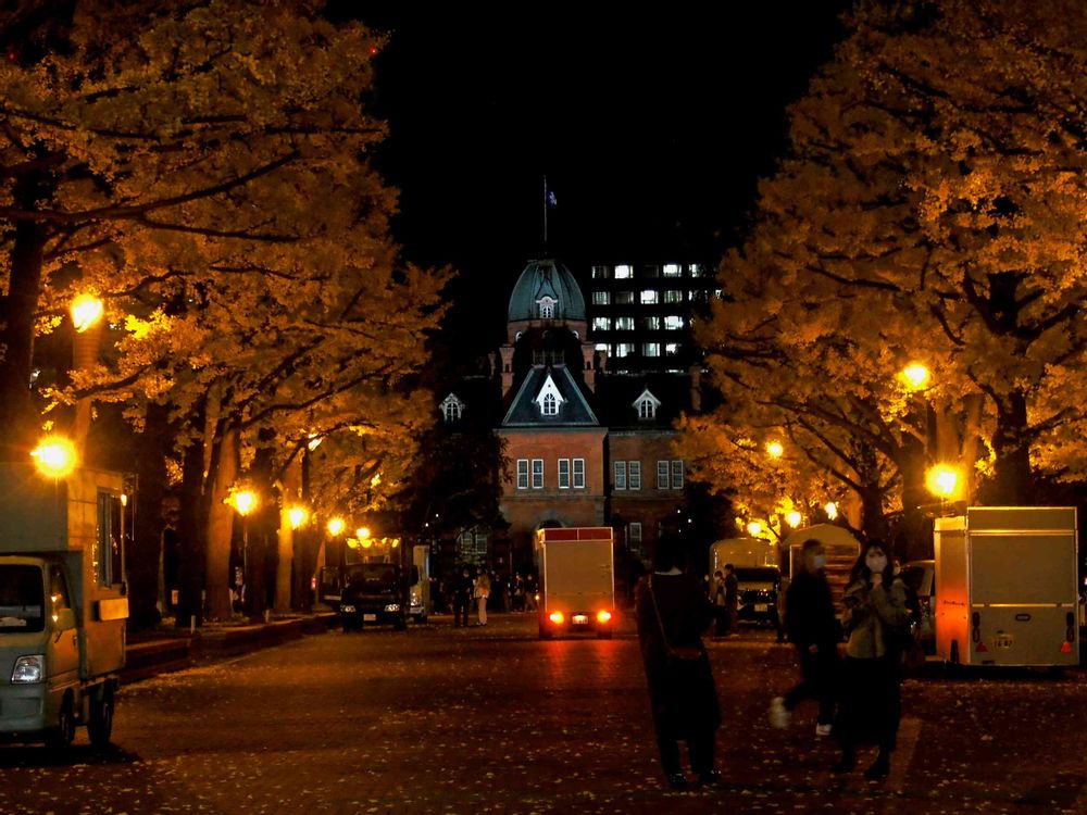 旧道庁赤レンガ庁舎と北三条広場の黄葉のコラボ