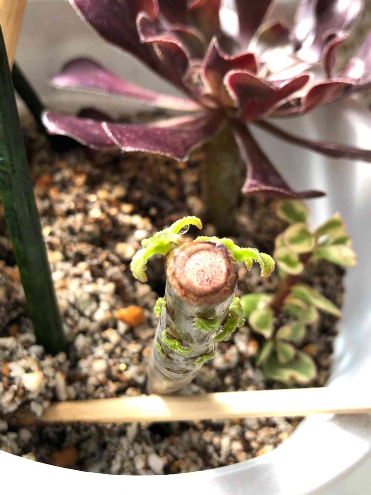 ◇ 多くの人が冬に寒さが心配で、家の中に入れてしまうが、家の中は太陽の光が弱かったり当たらない場合が多く、黒い葉が緑色になってしまうことがある。マイナス1~2℃までは耐えるので、東京あたりなら屋内に置くより、南側の軒下で十分に太陽に当てたほうが丈夫に育つようだ。そして、冬は乾燥させた状態で育てる。これも大切。