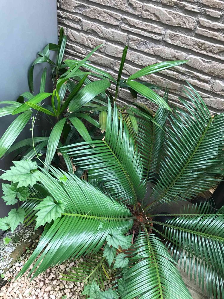 我が家の玄関脇にジャマにならない様に置かれてるソテツ!後ろのは名前がわからず(^-^;