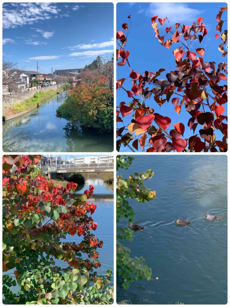 交通公園に自転車の練習に行く途中、地元の川に紅葉🍁している木がありました😃