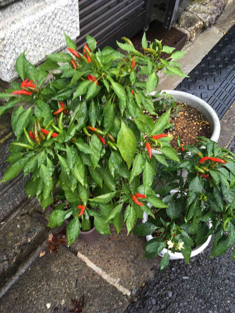 母親の田舎に帰った際に買った、友達へのお土産に丹後産唐辛子を渡したら、種を植えて苗になったものを夏に貰って今まさにこんなモリモリに(⋆ʾ ˙̫̮ ʿ⋆)