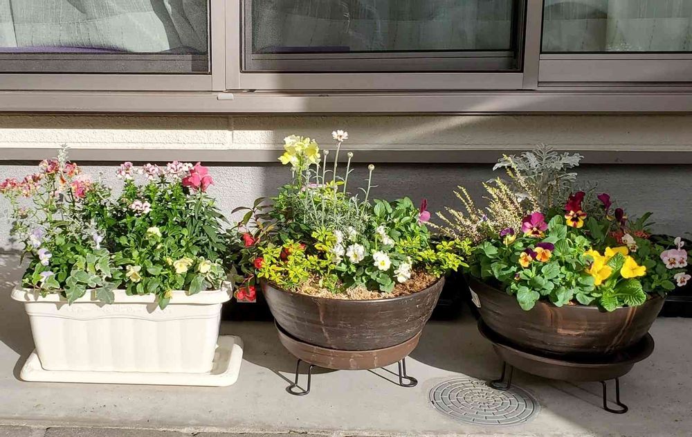 玄関の寄せ植えの1部ですが、賑やかになってきました☺✴
