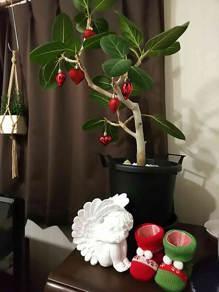 ゴムの木かわいいクリスマスツリー🎄になってるね(ღ*ˇ ˇ*)。o♡ステキ♡