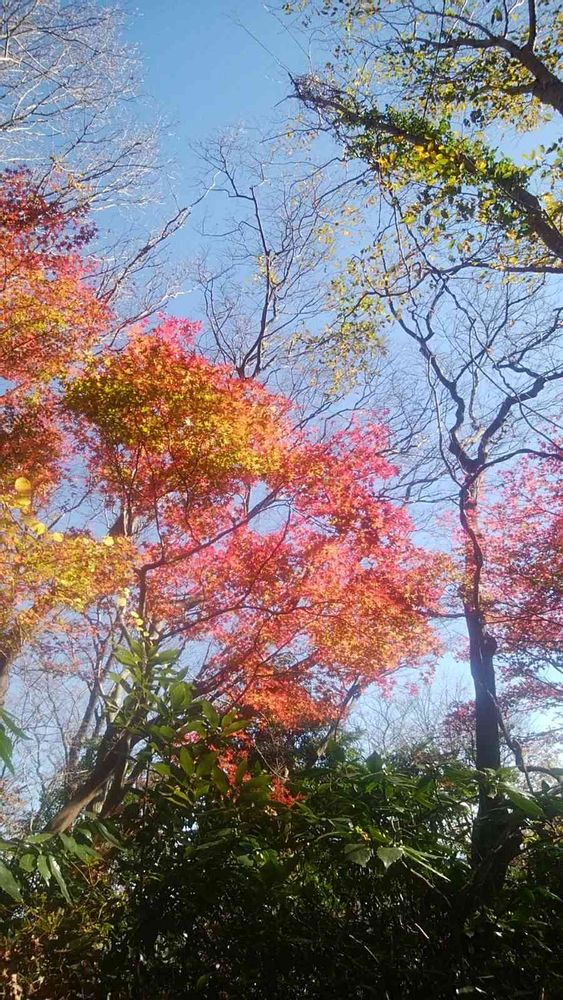 山歩きは、雲ひとつない青空に落葉樹が映え、体力的にも今シーズンが最適で、好きです🎶