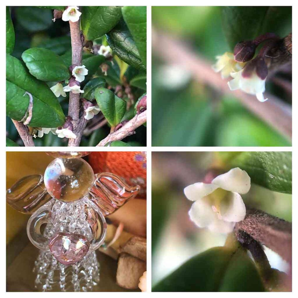 ガラスのエンジェルさんとハマヒサカキの雌花でズッキュ〜ン💘💘💘