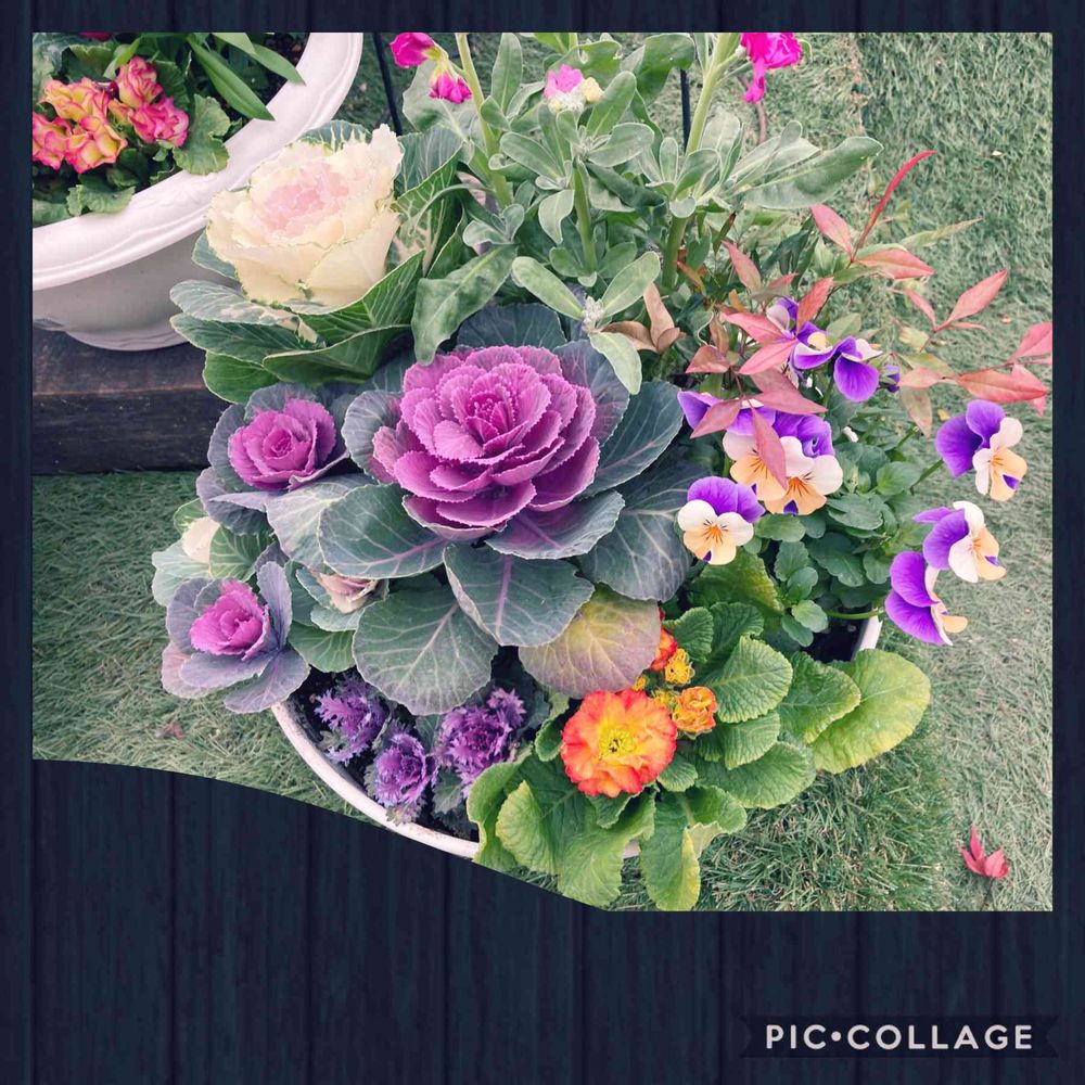 おはようございます😊 葉牡丹可愛いですよね💕寄植えの参考にぜひぜひ❣️って私が作った物ではございませんが😂