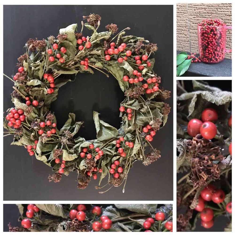 庭のクロガネモチの赤い実が大活躍です♡
