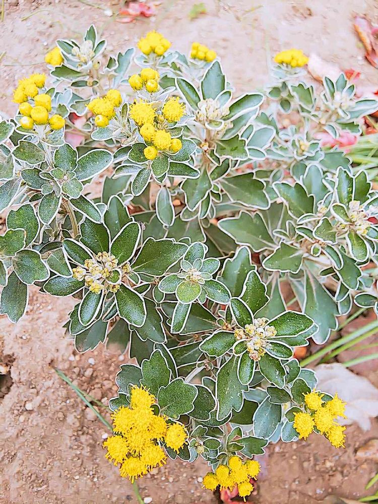 黄色いコロコロしたお花も可愛いし、ベルベットのような質感の葉っぱがお気に入りです。