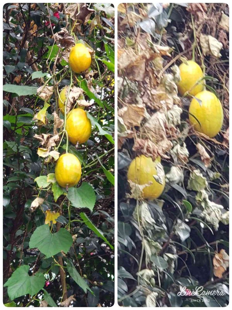 今日知り合いのお宅に訪問したらキカラスウリの実がなっていることに気がつき