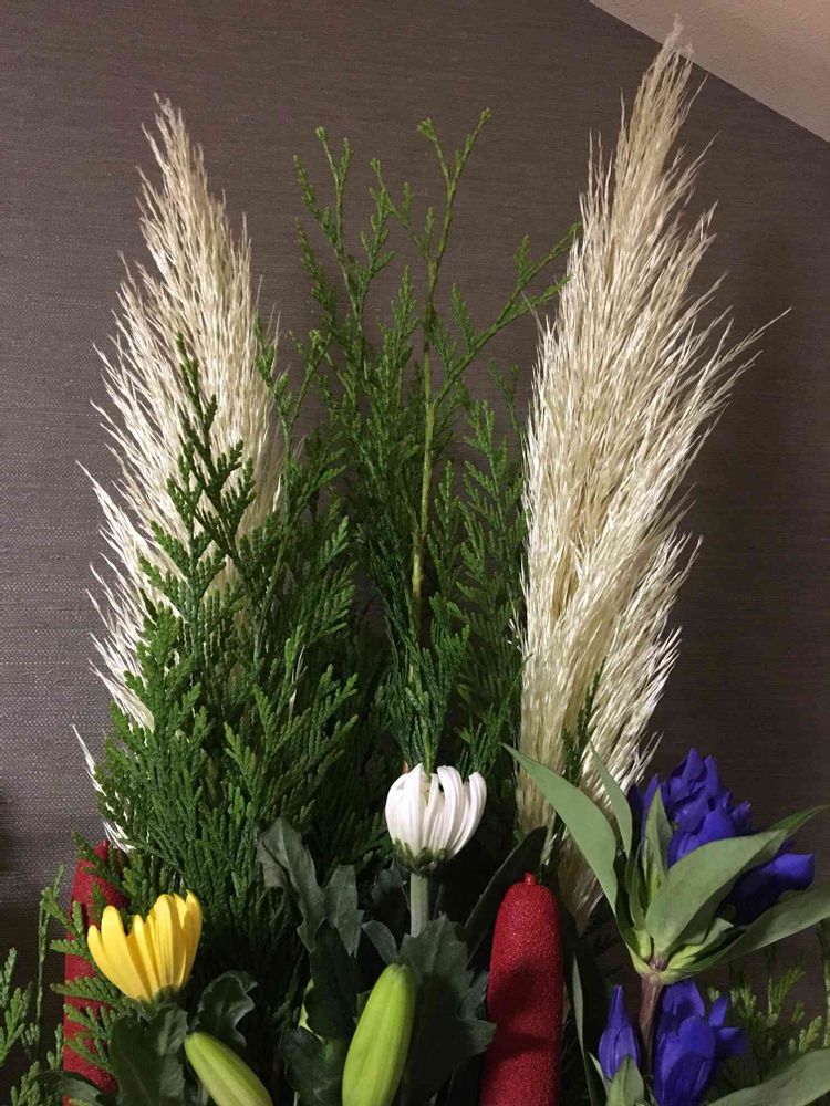 お盆なので(^^)パンパスグラスの穂はとても美しいですよね。あー育てて見たい しかしうちの超狭小庭に植えたら他に何も植えられなくなってしまう( ̄∇ ̄)うまく育て上げる自信もないですけどね(*゚▽゚)ノミニパンパスグラスでも育ててみようかな