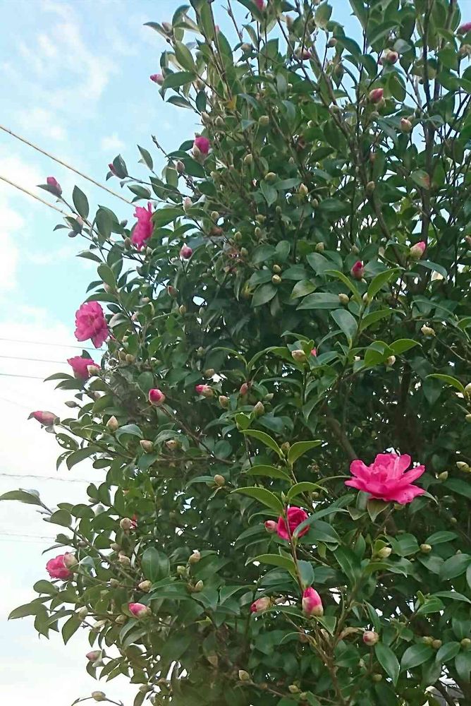 庭の山茶花🌼が咲いた🙌 放ったらかしなのに蕾いっぱい付けてくれてありがとう💐