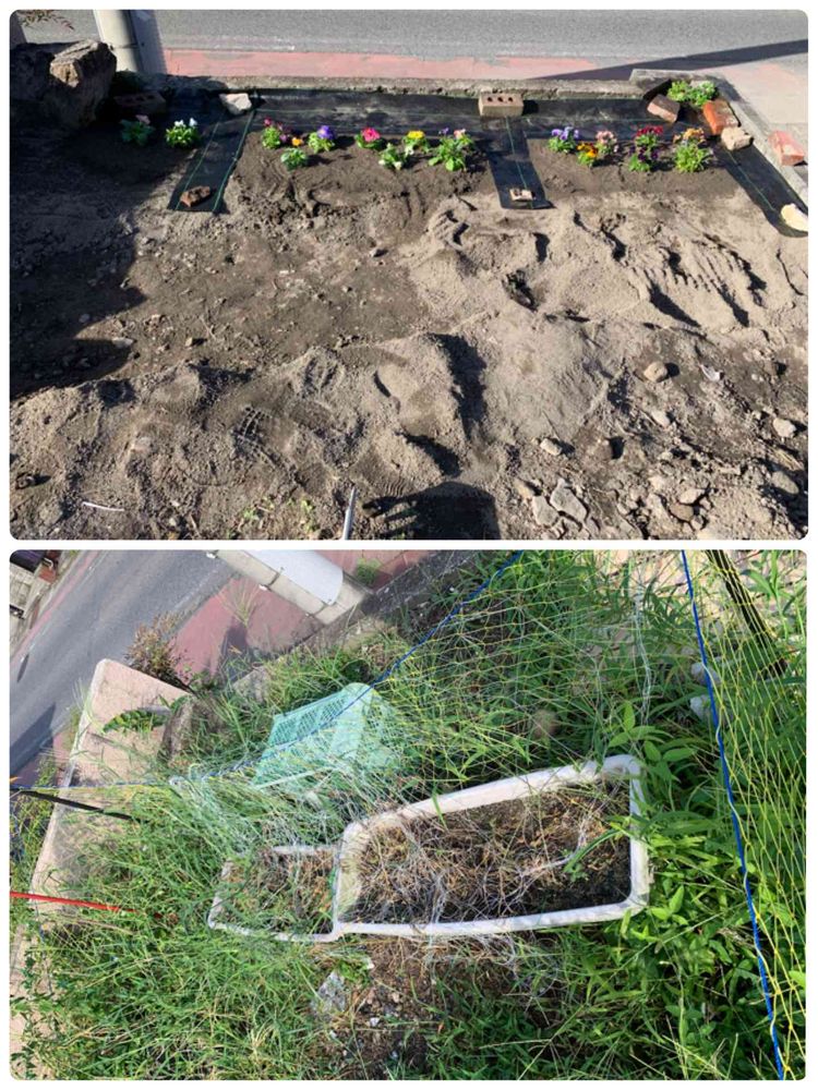 草むらの中に野菜の苗が埋まっている状態ですね😥