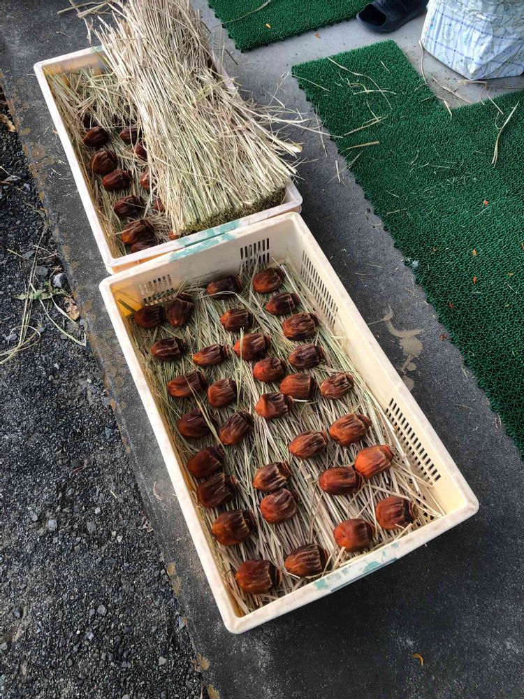 干してから、2週間経ちました。食べてみたら、柔らかくて美味しかったです。次はこんな風に藁のベットに寝かせて白くこうがふくのをまちます。