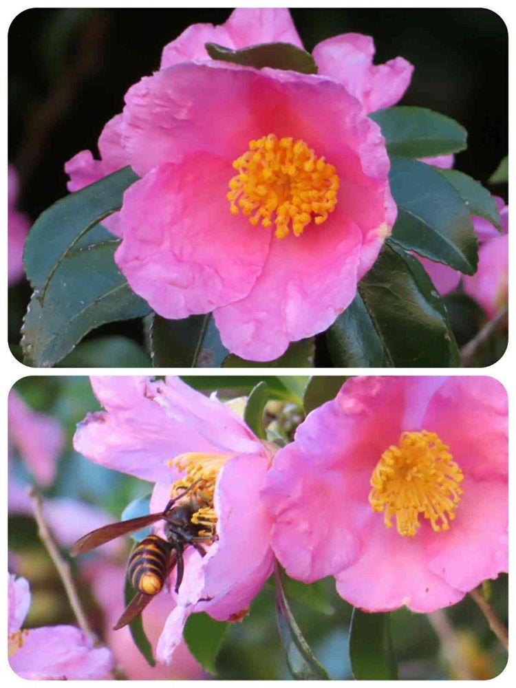 お出かけ先,山茶花(サザンカ),蜂(はち)の投稿画像