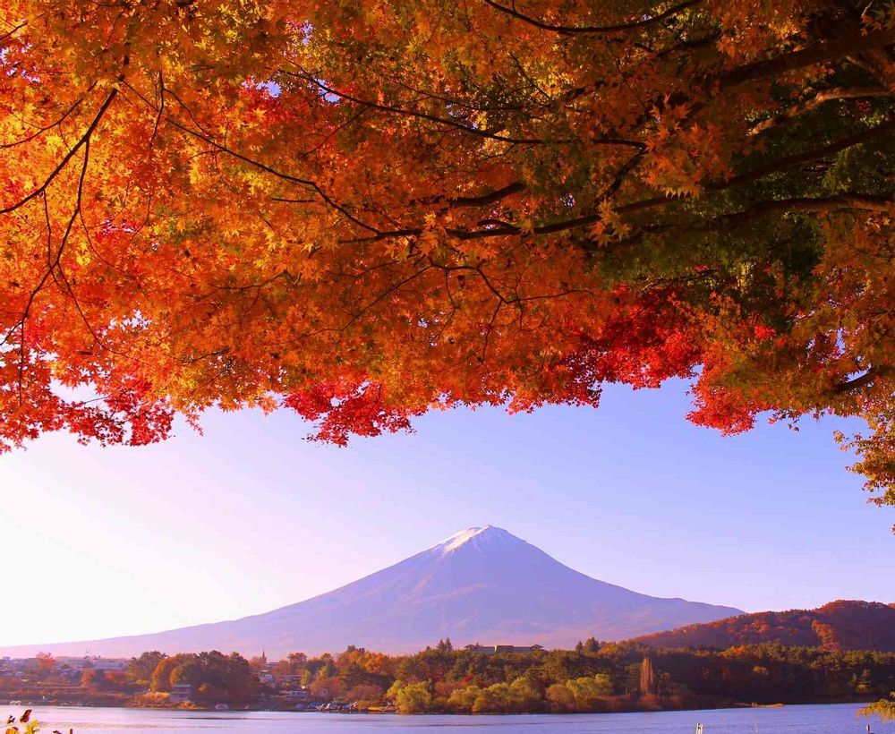 真っ赤なもみじ天井におおわれた富士山が最高に綺麗でした😂