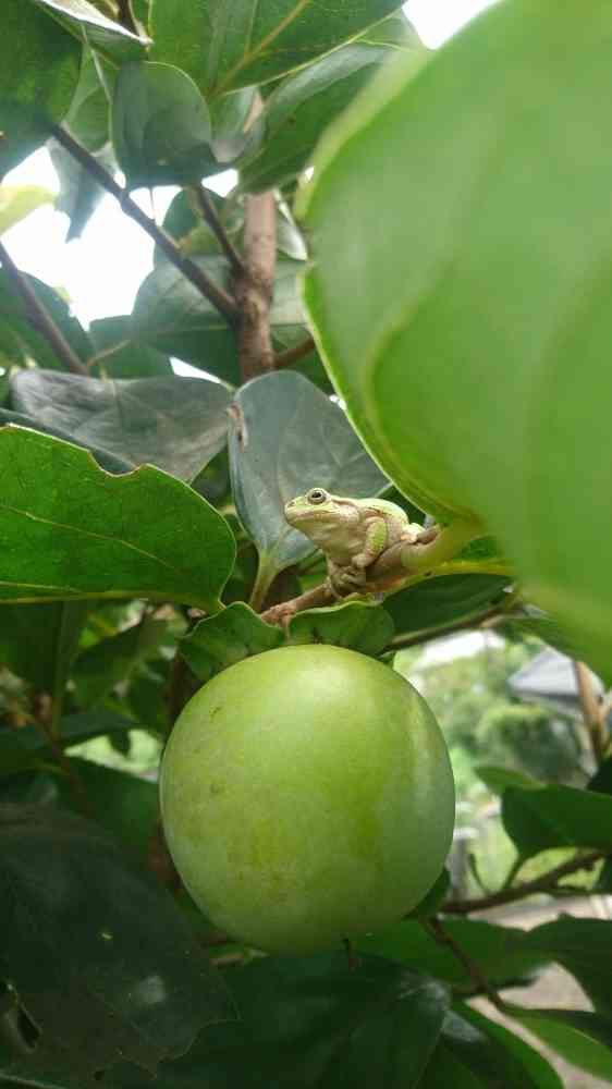 柿の木に雨蛙が✨