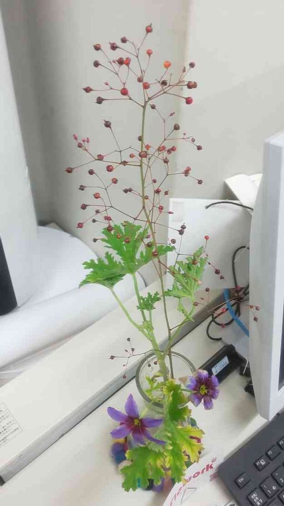 線香花火を逆さにしたような姿と、赤く色づいた実を愛でることにします🍀