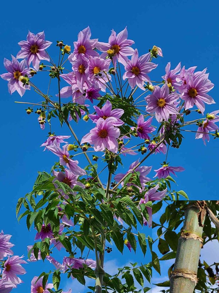 皇帝ダリア、今日お友達と公園でみたのですが、茎が、竹のようになっていて👀して帰ってきたところです。竹といってもおかしくないくらいの、茎でした。
