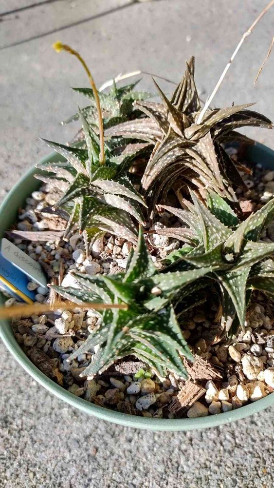 20年生の株は今年の夏に蒸れて枯れました。世界一小さなアロエとの事ですが、8センチ以上になりました。その群生した子株たちです。
