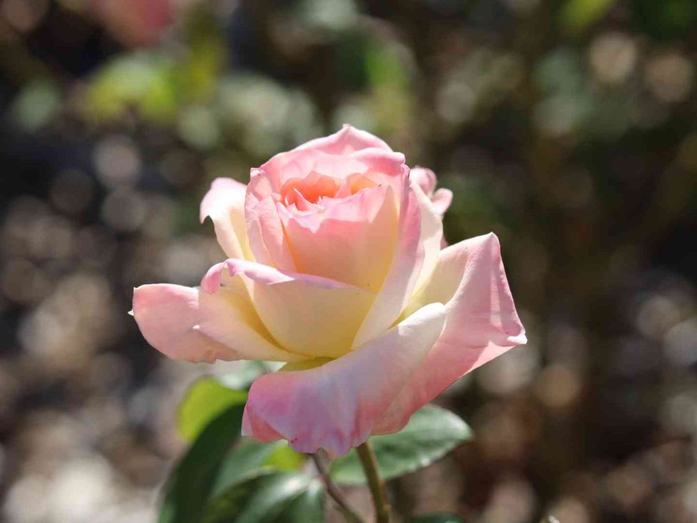 柔らかいクリームイエローの花びらの縁をピンク~やや赤みの強い珊瑚色が縁どり、きりりと高く芯を巻き上げた花姿が美しい💓