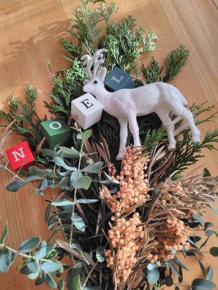 このまま壁に飾るスワッグにしたかったのですがクリスマスの感じを出したくてクリスマスの飾りを載せてみました😊固定はしていないのでこれでは壁に飾れない…😥😥😥