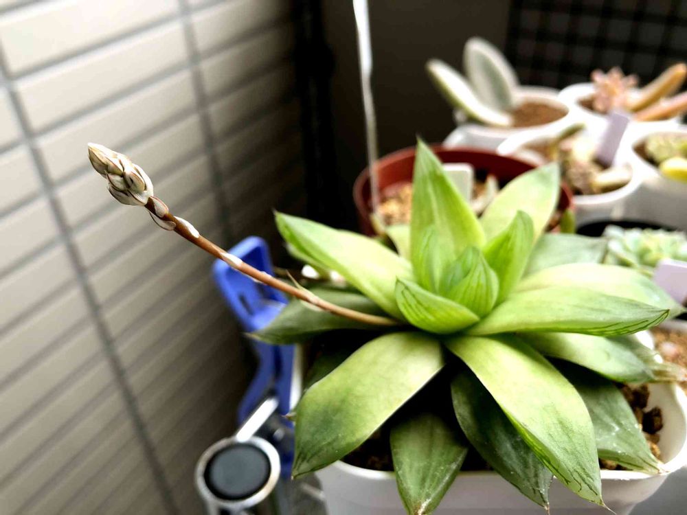 多肉ちゃんの花芽はにょきにょき伸びて可愛いですよね!思わずじっくり観察しちゃいます😍