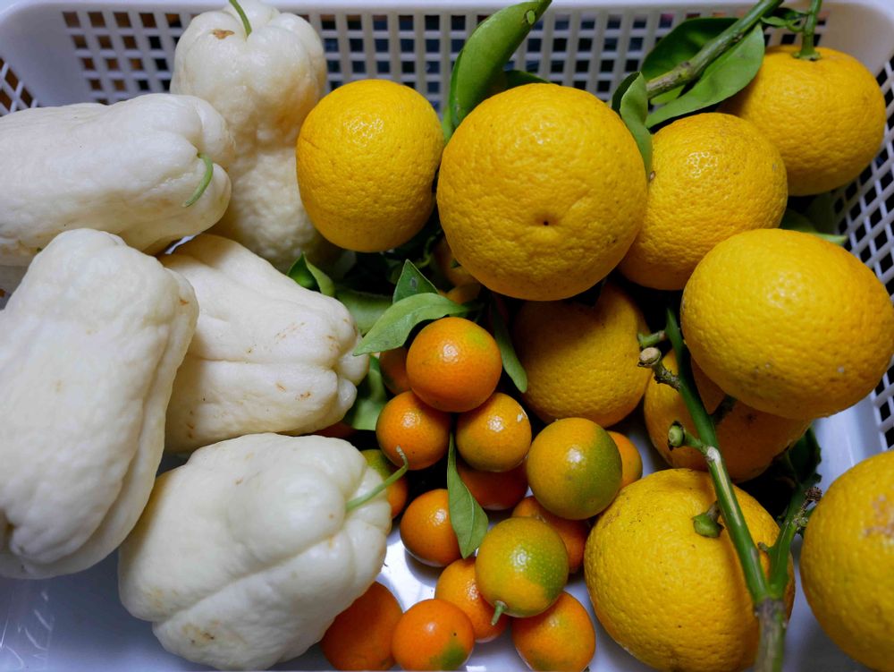 ふくさんサンからのステキ便の一部ですが、カボスや柚、金柑、そして左側!