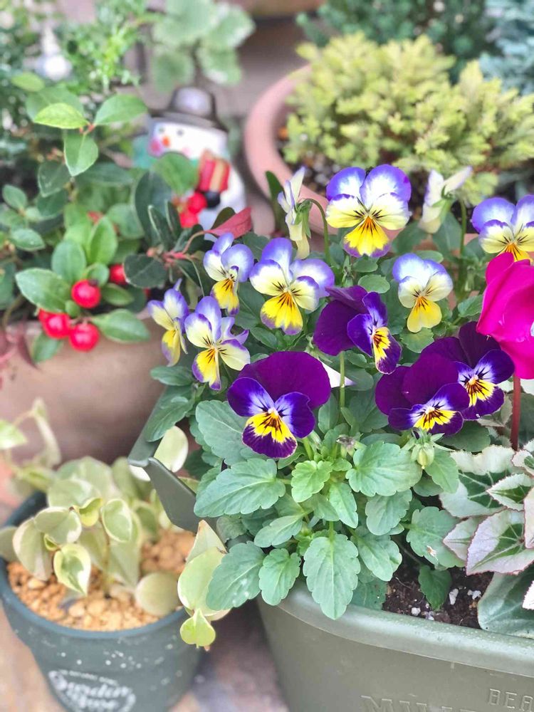 ビオラがたくさん咲いてくれてる🥰チェッカーベリーもいい感じ!!