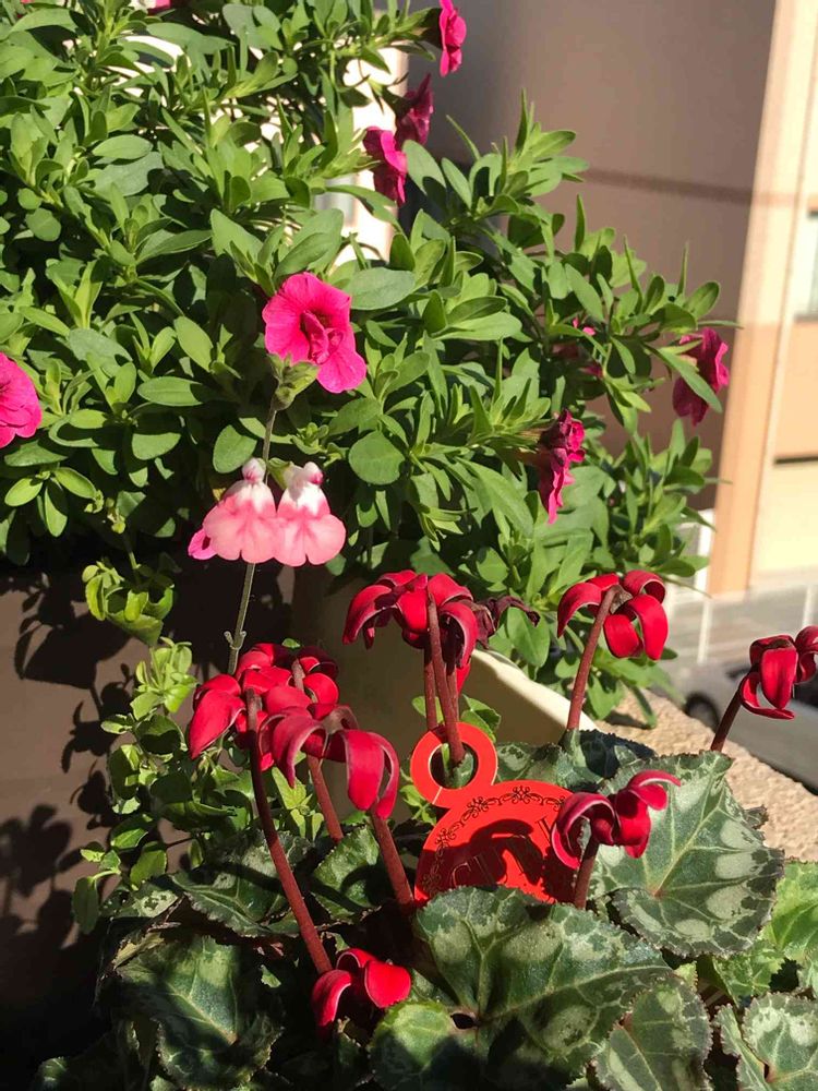 バルコニー/ベランダ,チェリーセージ,ミニシクラメン カールの投稿画像
