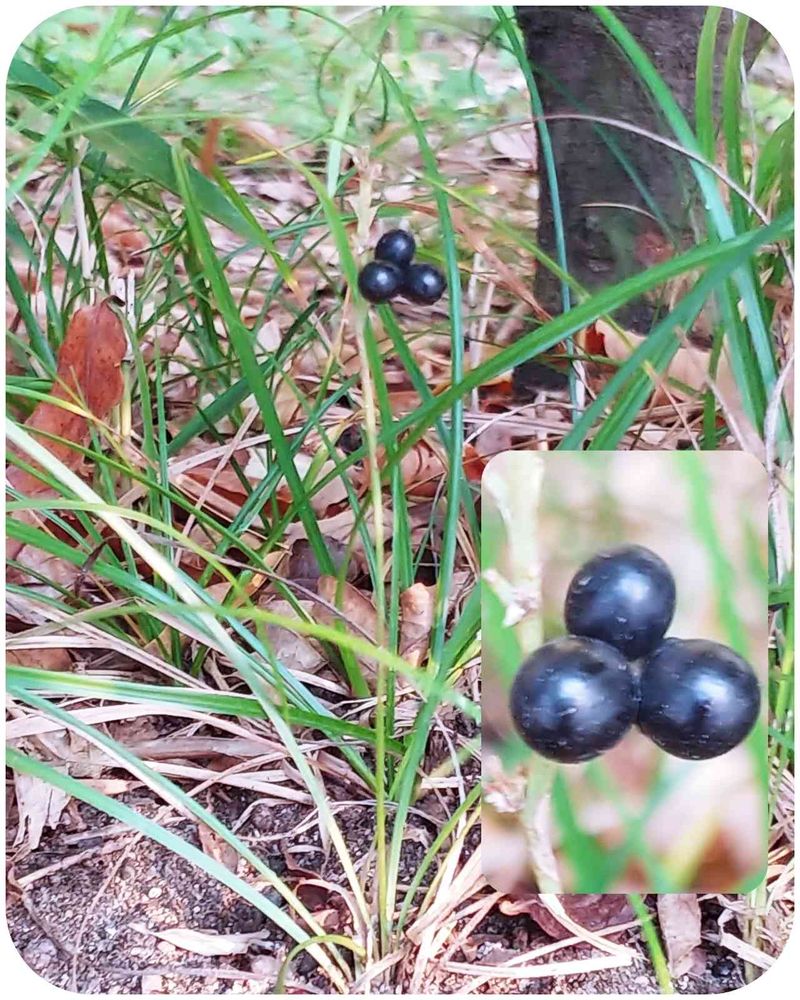 私も「ヤブラン」って思ったのですが、茎と葉っぱが激細で果実?が3個くっついているのがヤブランには無いので・・・⤵️
