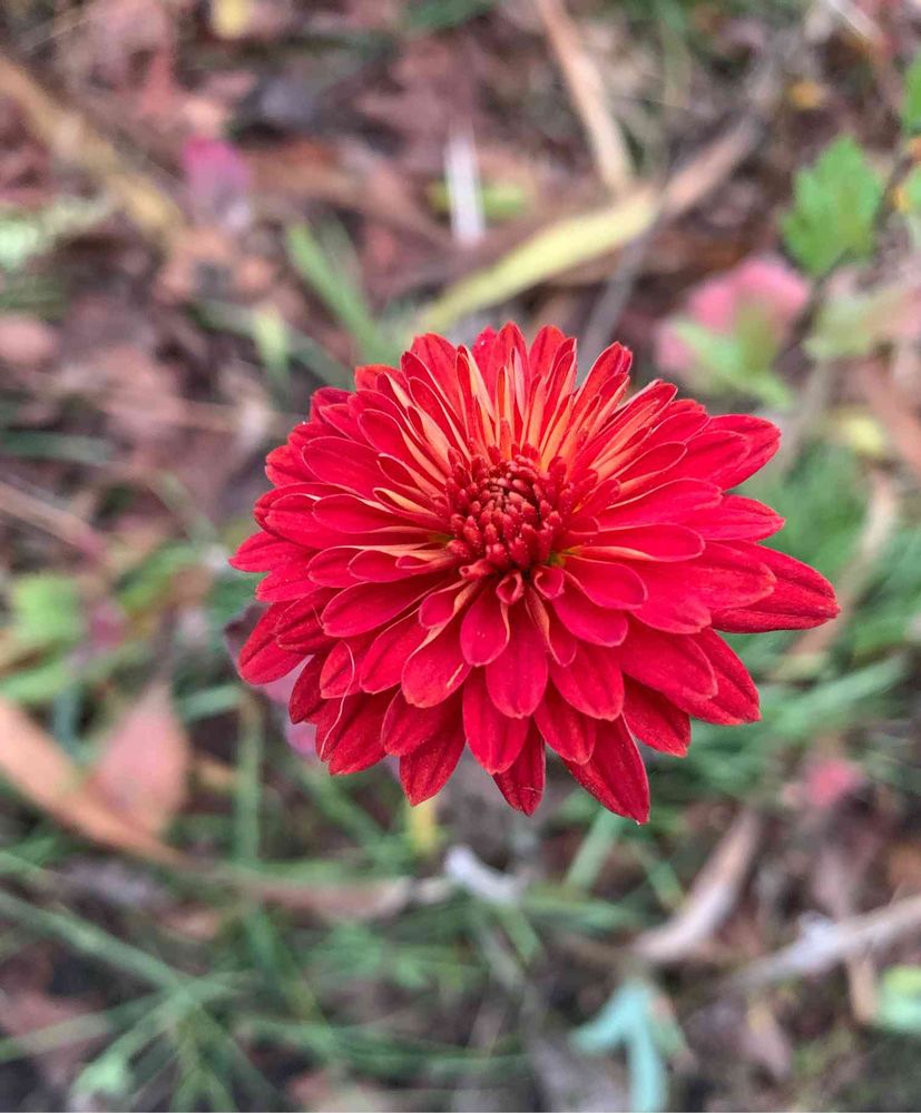 今朝はこの時期にしては暖かい気がします。真っ赤な小さな一輪のダリア。