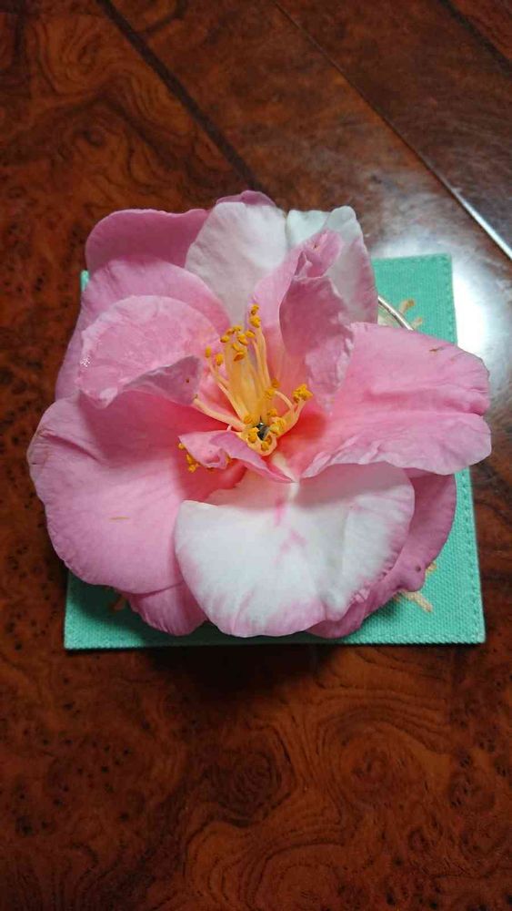 💗椿の花が取れてしまいましたが、可愛いのでお皿にお水を入れて、テーブルに飾りました~✨💫🎵💗