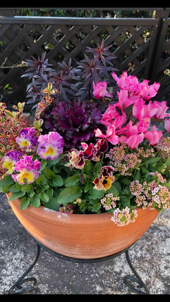 葉牡丹のダークな色合いに惹かれて寄せ植えしました(◡‿◡ฺ✿)