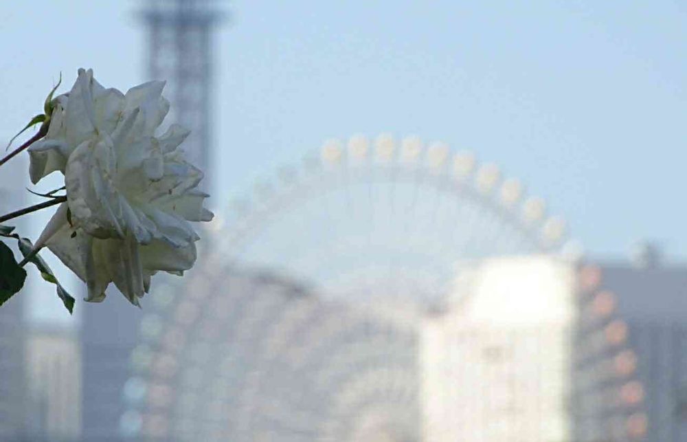 白い薔薇にバックの観覧車❄️⁇キラキラホワイト✨✨✨