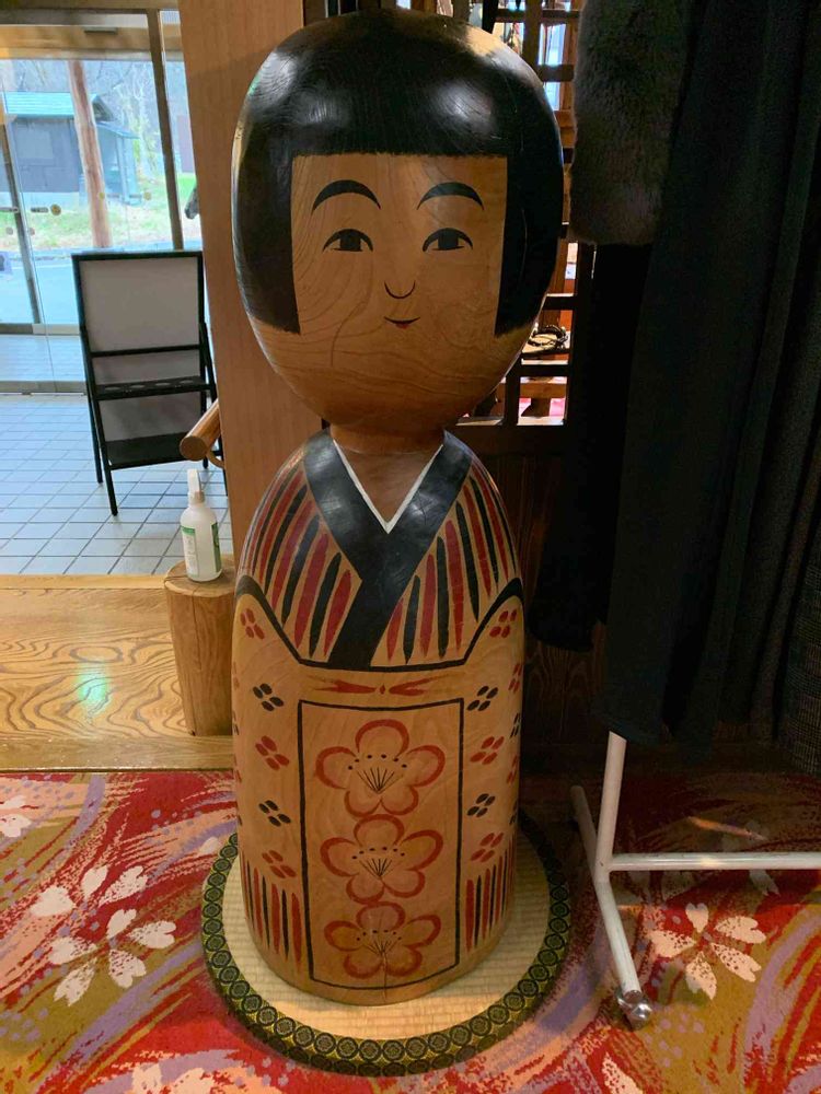 こんなに大きなこけしはなかなか、無いと思います。他にも、別の物が何本かあって、宿の雰囲気に、ぴったりでした。