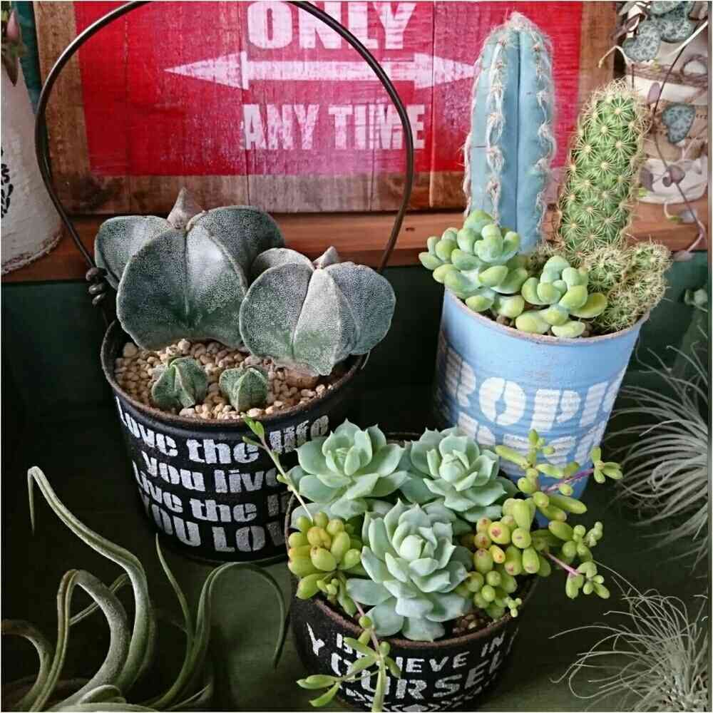 サボちゃんに詳しくないので名前がサッパリ分からないけど、お気に入りたちを寄せ植えにしてみたよ〜(♥´∀`人´∀`♥)