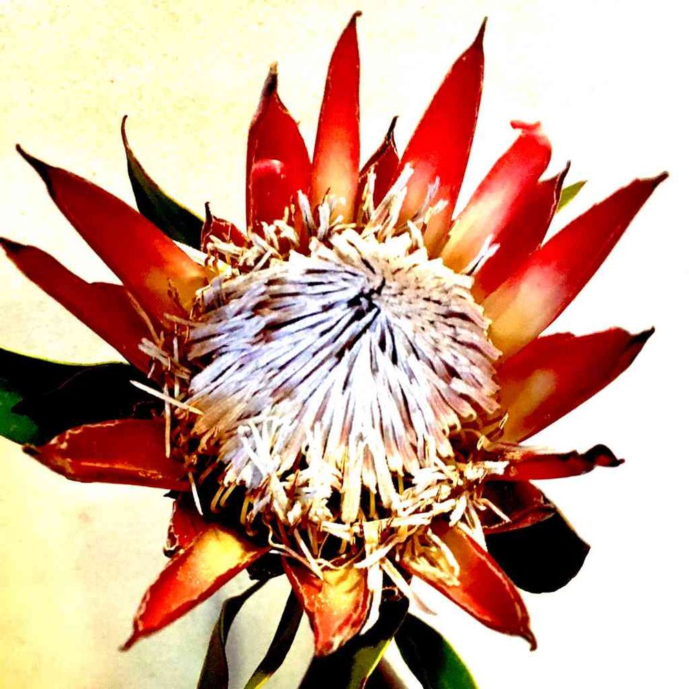 キングプロテア、プロテアの中でも最大の頭状花を持つ被子植物。南アフリカ共和国の南部に広く分布していて、キングプロテアは南アフリカ共和国の国花である。ちなみに日本の国花は「さくら」皇室の家紋のモチーフにもある「菊」も国花とされています🌸🌝🌸✨お店に人間の頭くらいの花頭のもありましたよ。