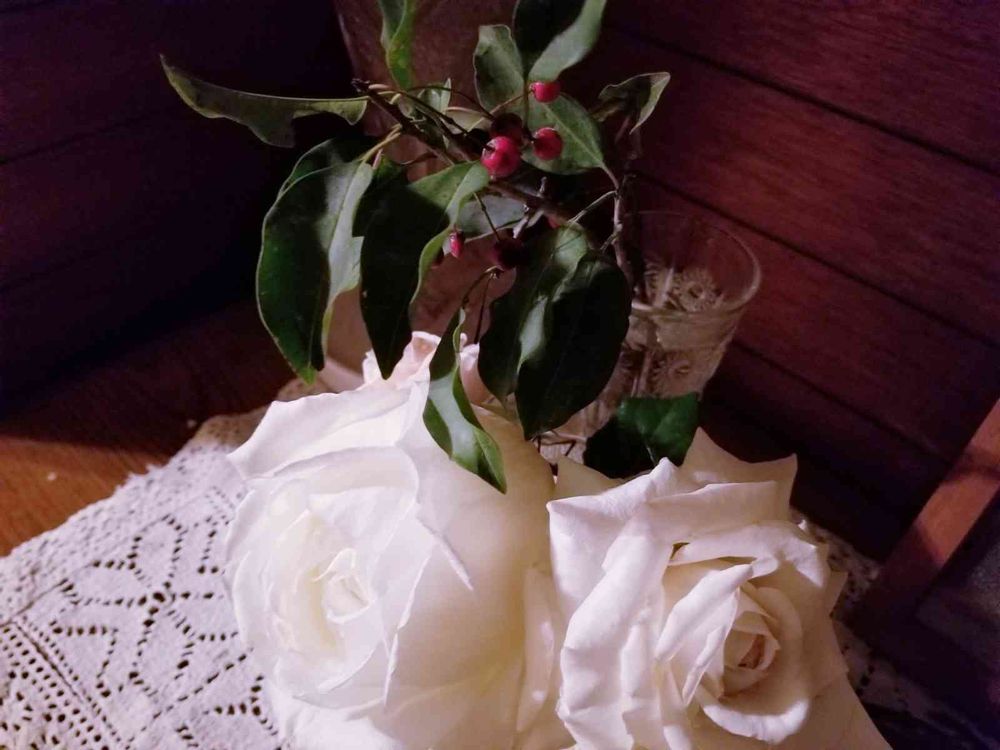 切り花にしたホワイトクリスマスと恋瀬が日に日に大きく咲いてくれて、